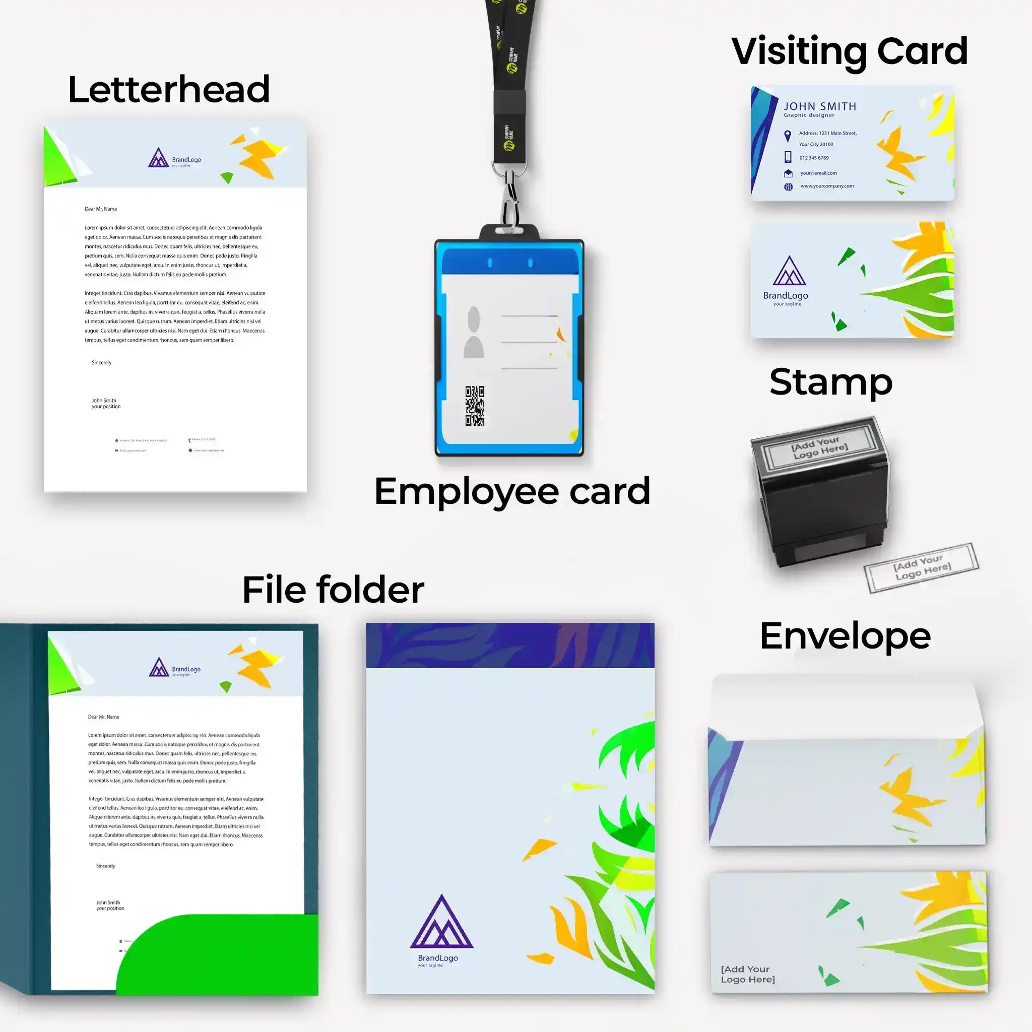 Make a bold statement with the Corporate Business Essentials Bundle, featuring a modern abstract green & yellow design. This professional branding package is perfect for entrepreneurs, corporates, and freelancers looking to create a distinctive and polished brand presence.
