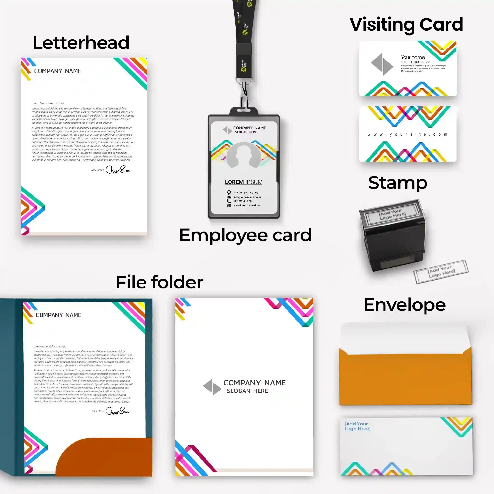 Make your brand pop with the Vibrant Geometric Corporate Business Essentials Bundle—designed for creative minds and modern professionals. Featuring striking multicolor patterns and sleek typography, this set is perfect for businesses that want to stand out.