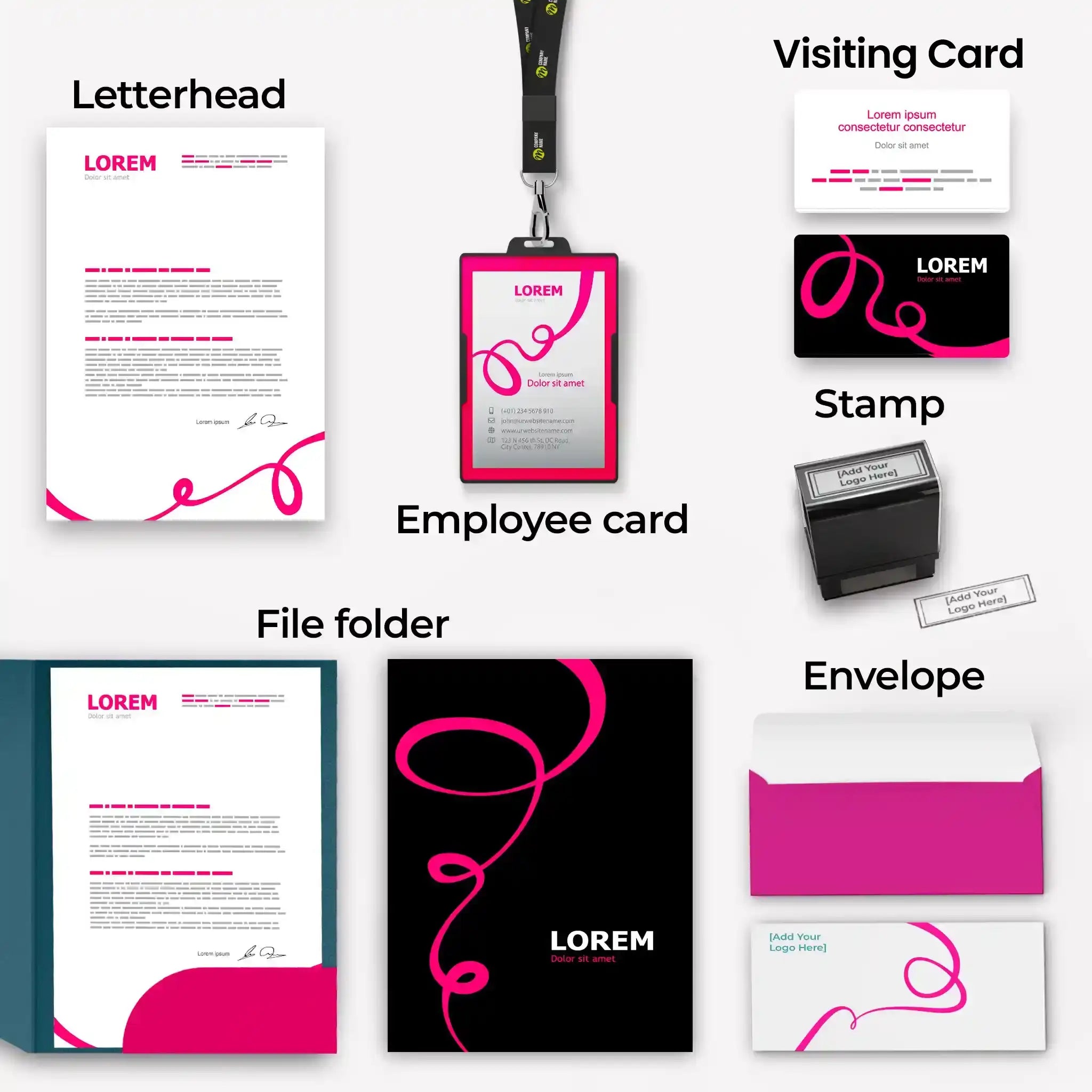 Stand out with confidence using the Bold Pink & Black Corporate Business Essentials Bundle! Featuring a sleek black, white, and pink theme, this set is perfect for fashion brands, beauty businesses, creative agencies, and trendsetting startups. The modern swirl design adds an artistic touch, making your brand memorable and stylish.