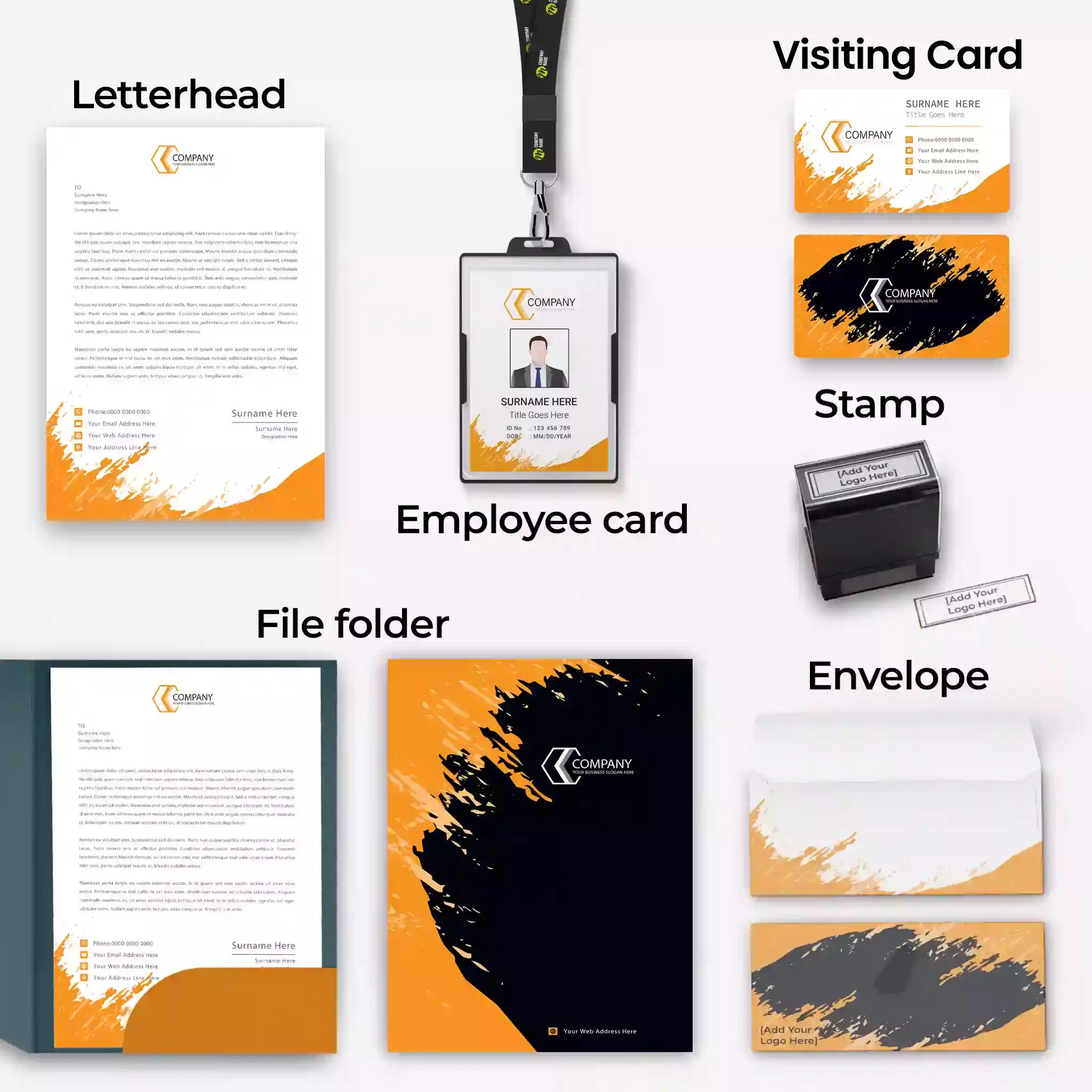 Make a powerful impression with the Corporate Business Essentials Bundle, featuring a striking orange brushstroke design. Ideal for startups, agencies, and professionals, this set enhances brand visibility with a modern and bold look.
