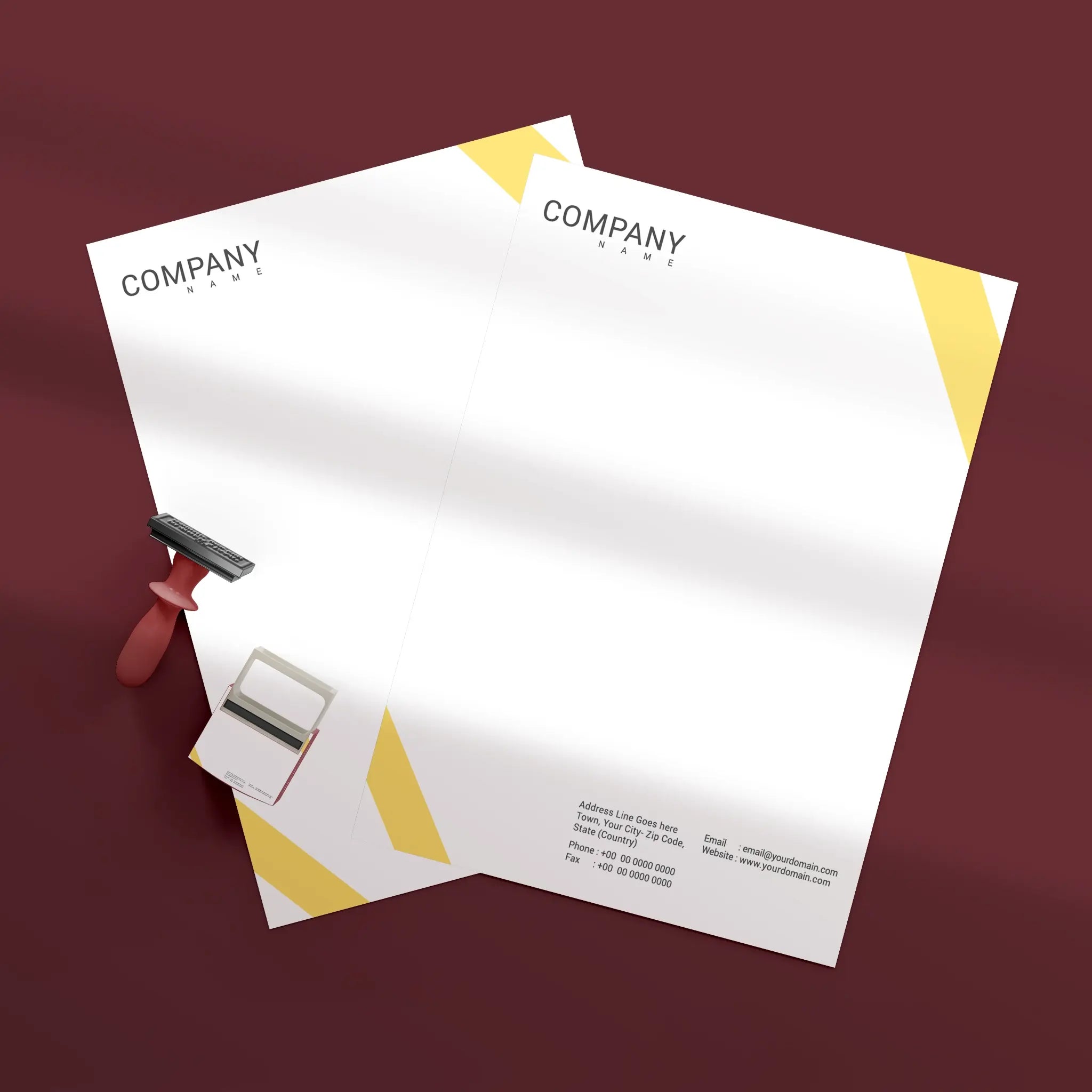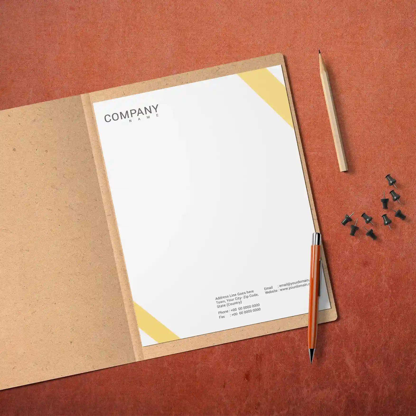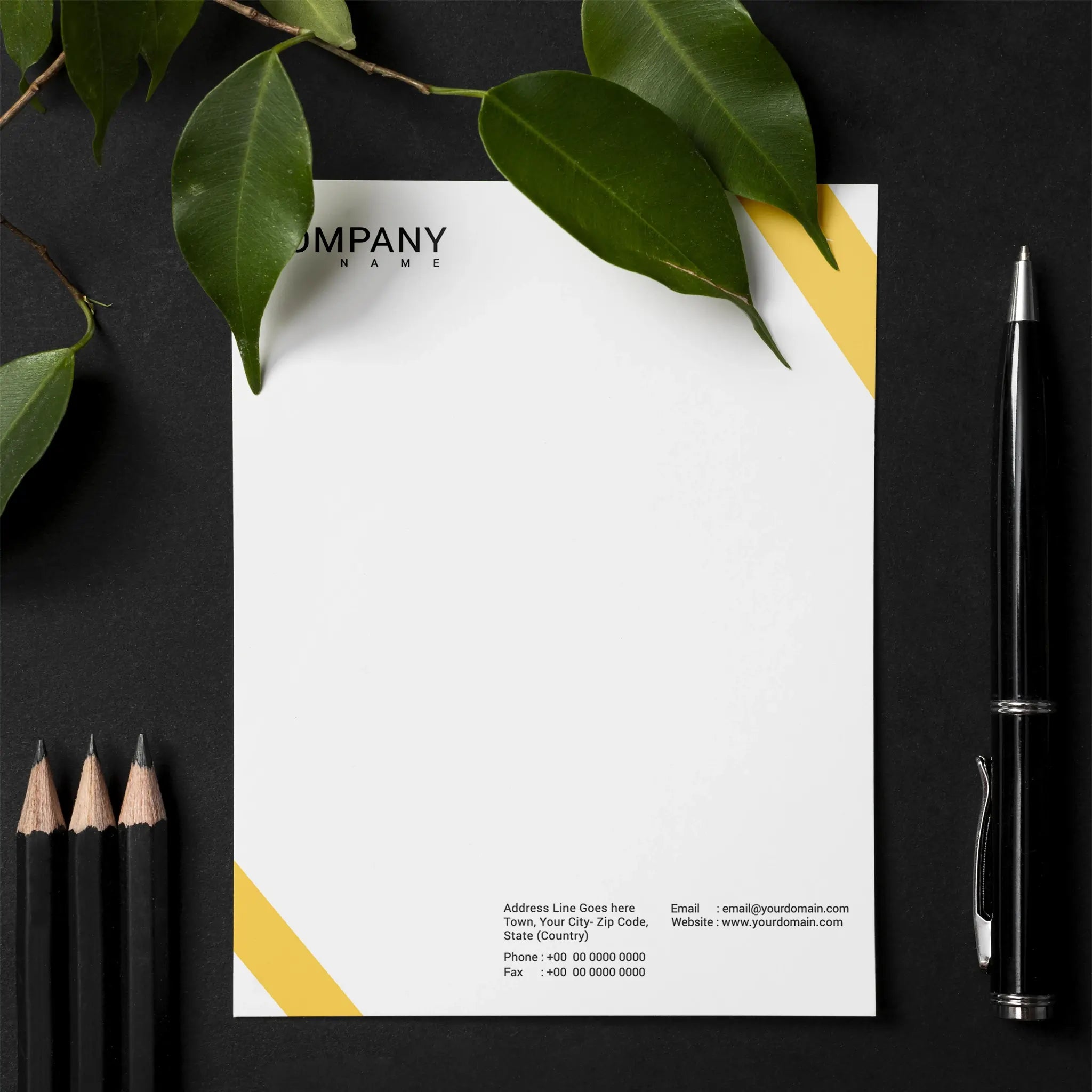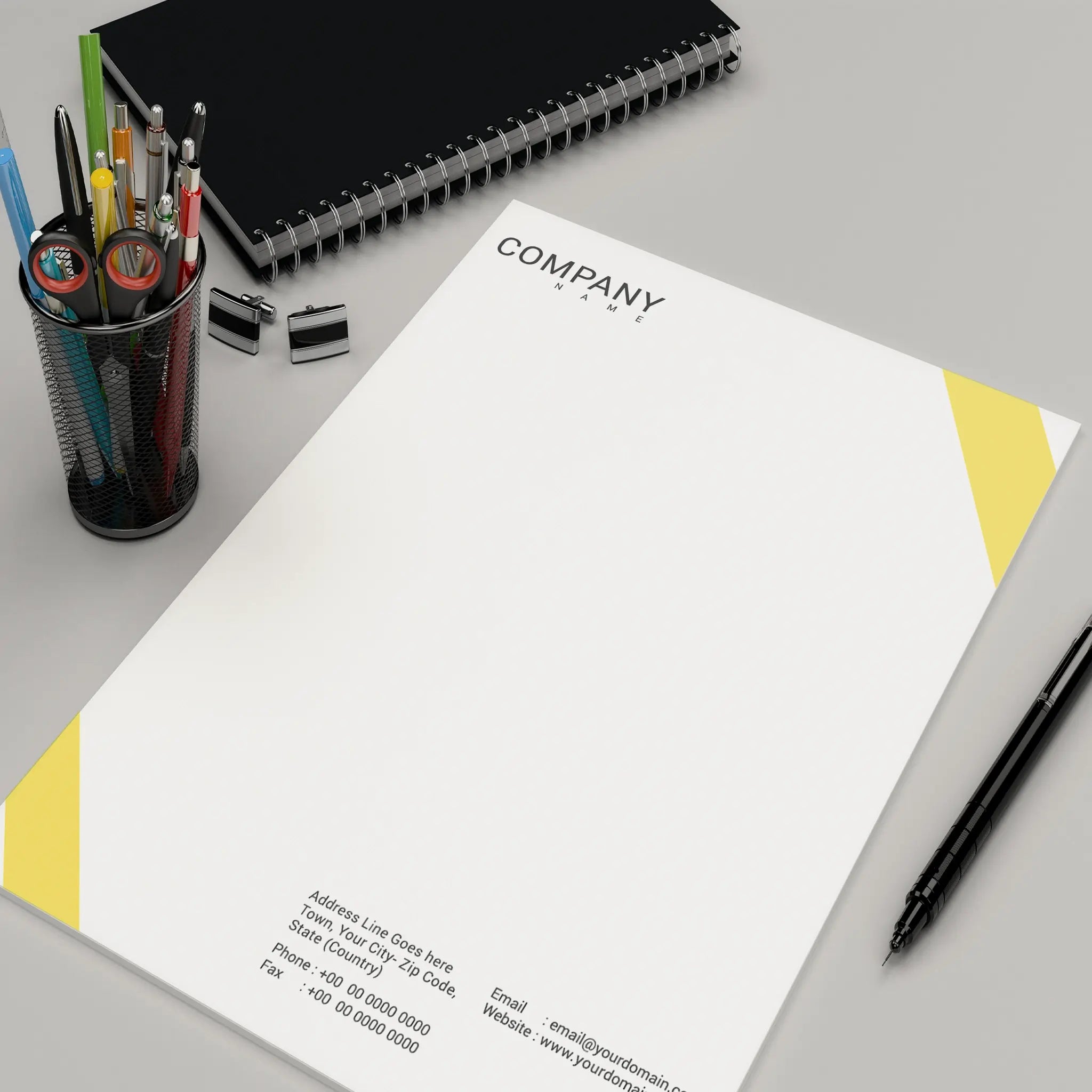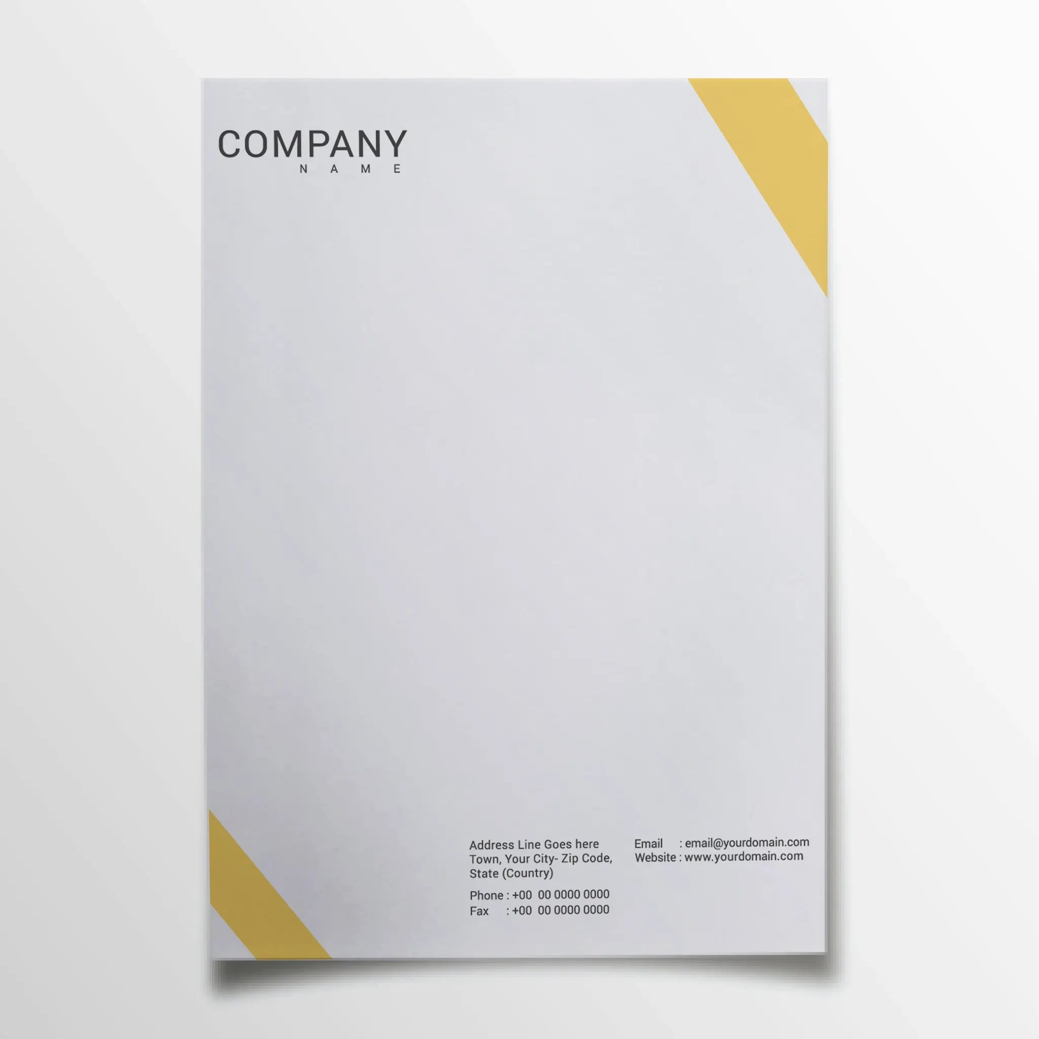 Simplicity meets elegance with our Minimalist Business Letterhead, designed for professionals who prefer a clean and modern look. The subtle yellow corner accents add a touch of sophistication, making it ideal for corporates, consultants, law firms, and creatives.