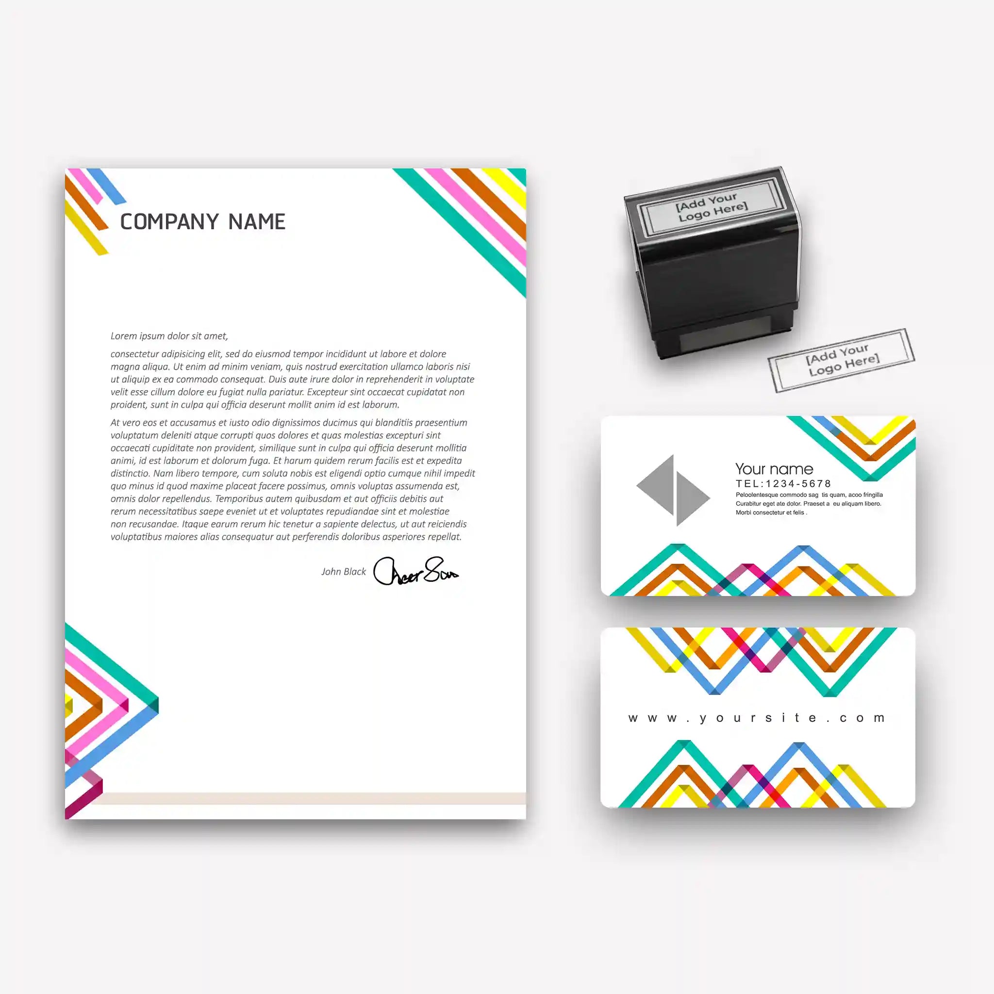 Make your brand pop with the Vibrant Geometric Startup Business Essentials Bundle—designed for creative minds and modern professionals. Featuring striking multicolor patterns and sleek typography, this set is perfect for businesses that want to stand out.