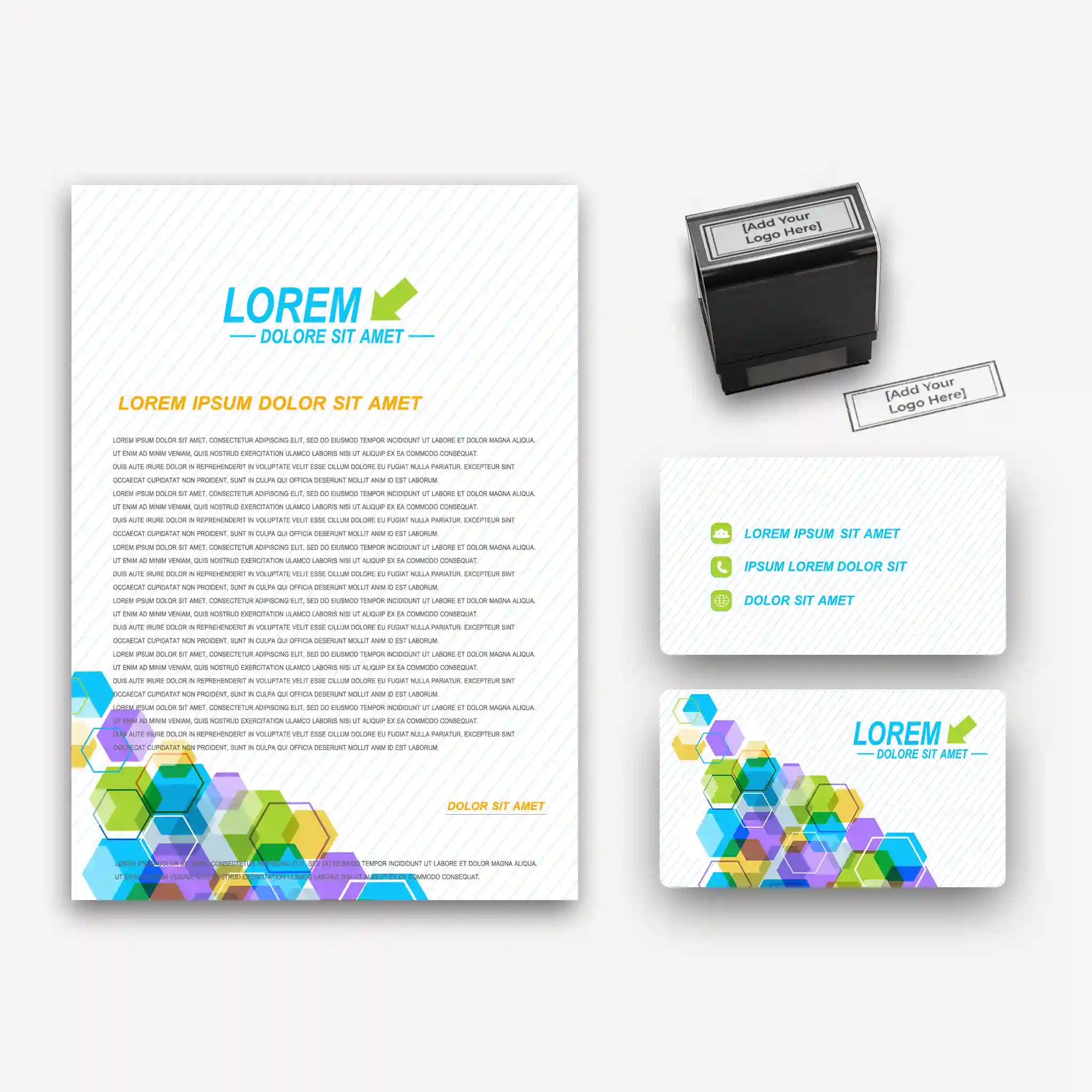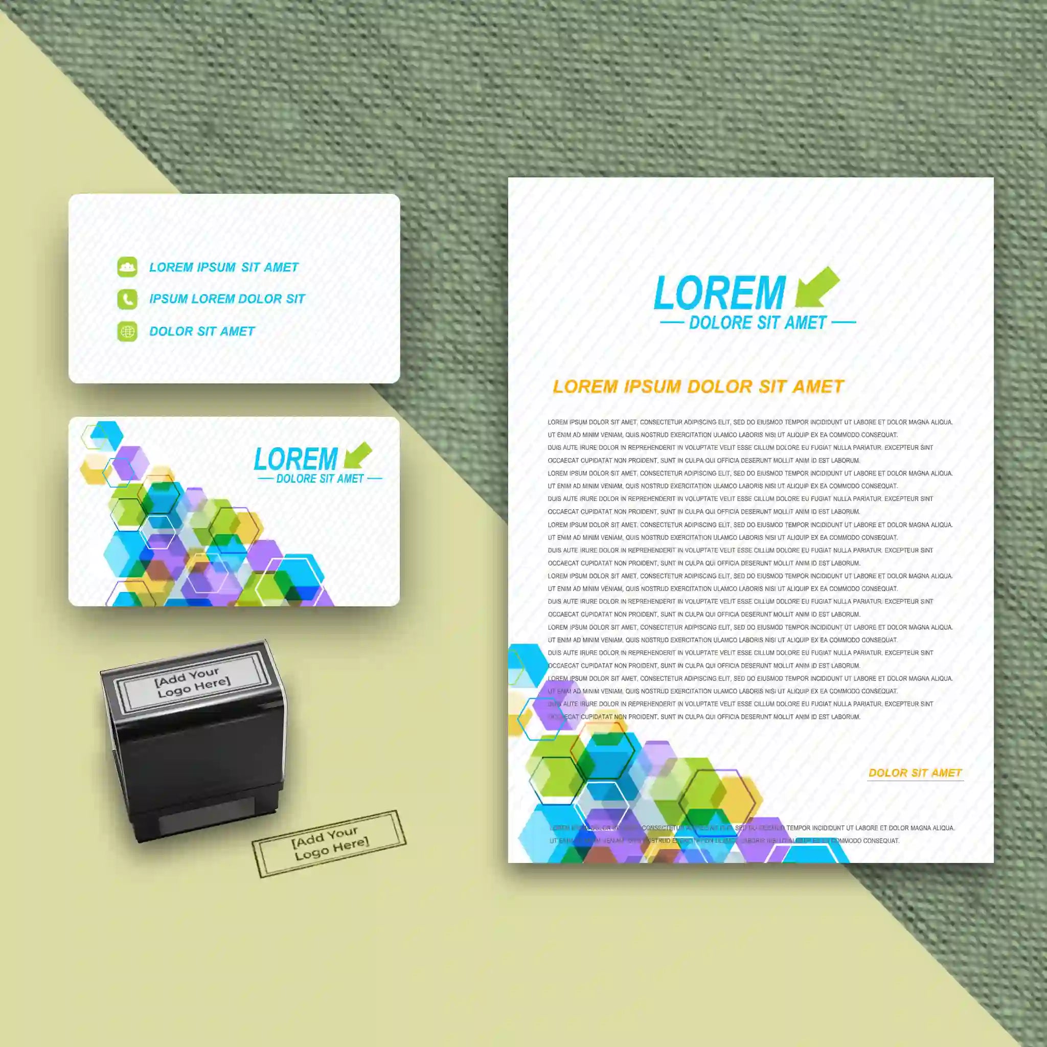 Take your branding to the next level with the Geometric Vibrance Startup Business Essentials Bundle, designed for businesses that want to stand out with a contemporary and energetic aesthetic. The hexagonal pattern with bright blue, green, and yellow tones creates a striking visual identity, making it perfect for tech, creative, and innovative brands.
