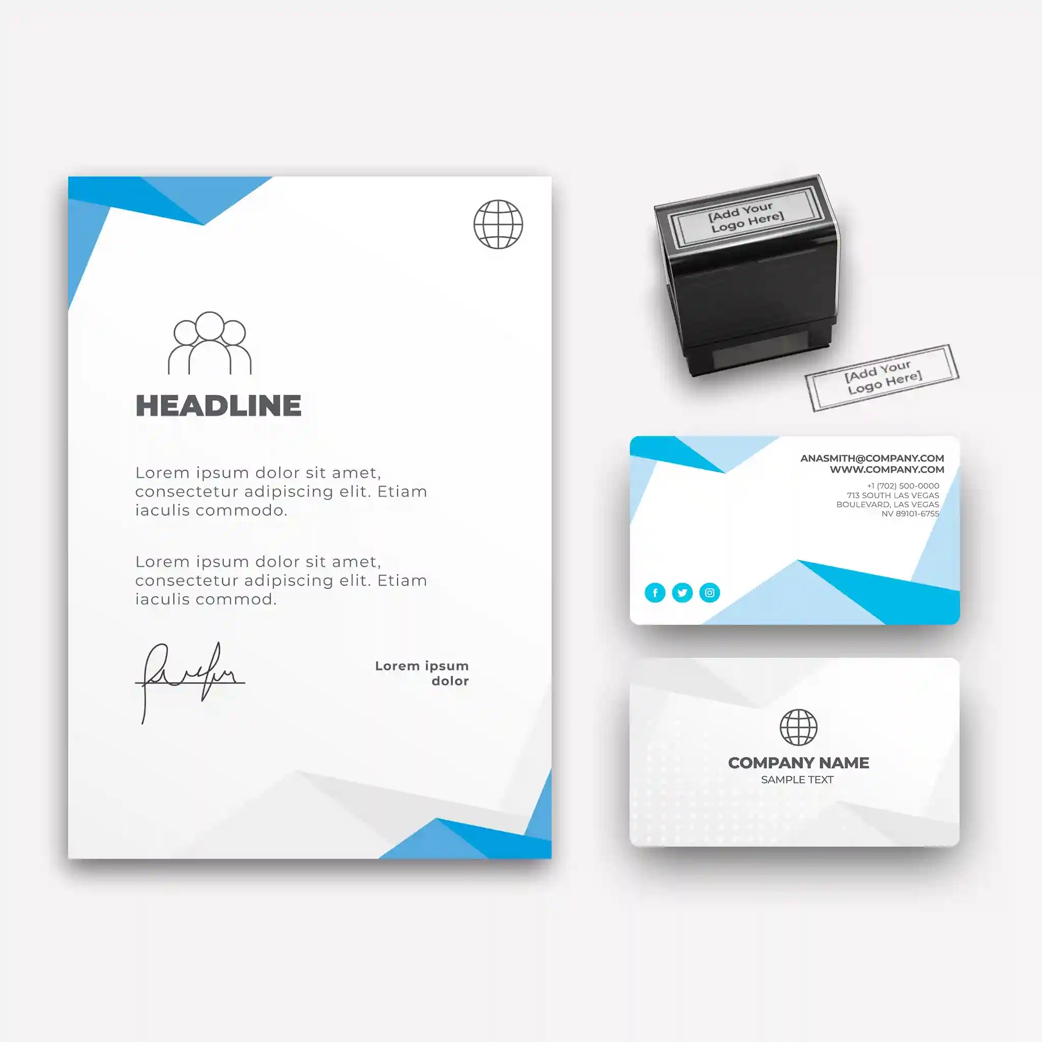 Give your business a crisp, contemporary look with the Modern Blue & White Business Essentials Bundle. This set features a sleek geometric design with a refreshing blue and white color palette—ideal for corporate professionals, startups, and tech-driven brands.