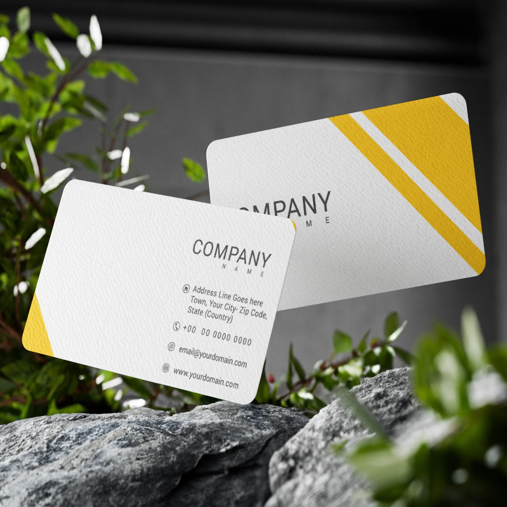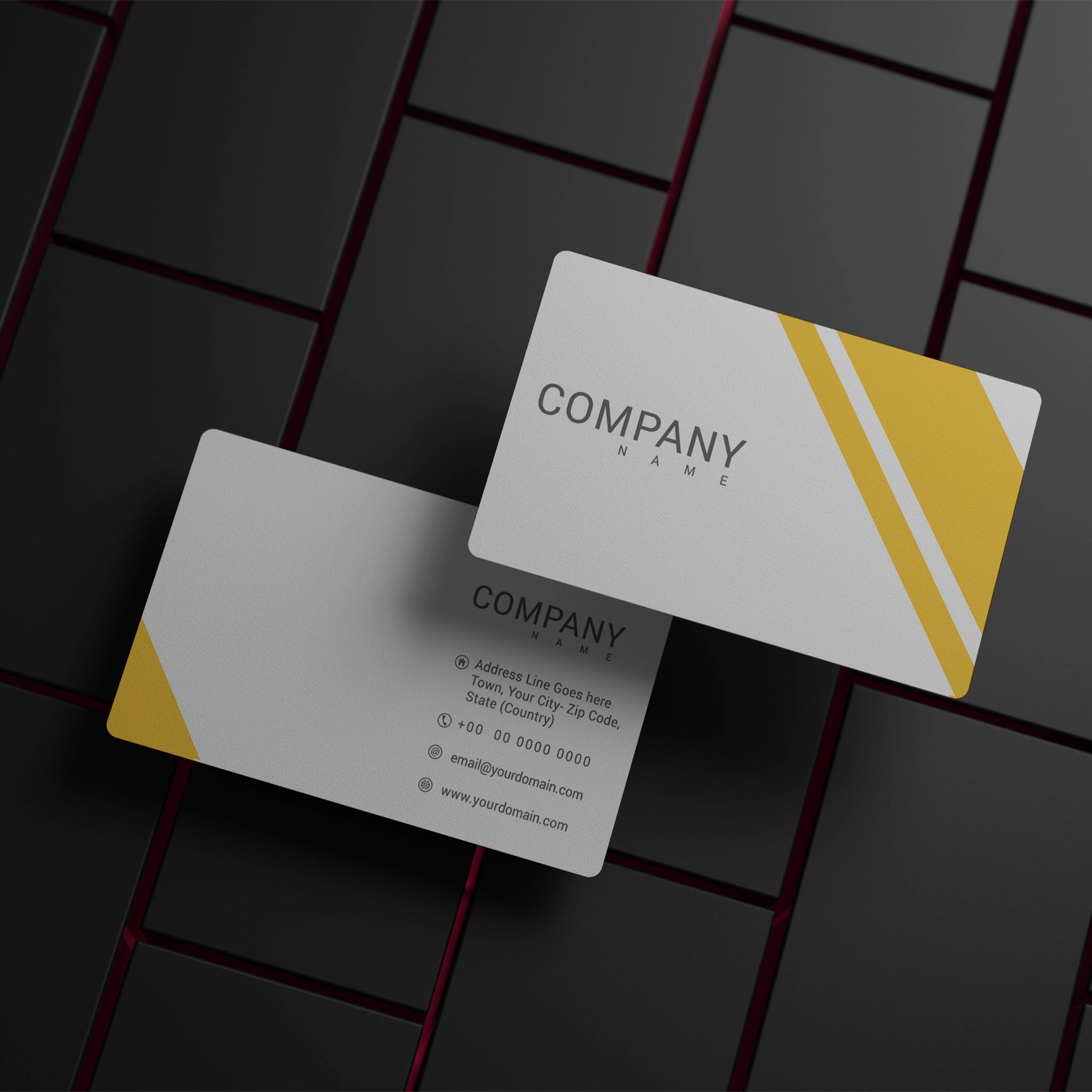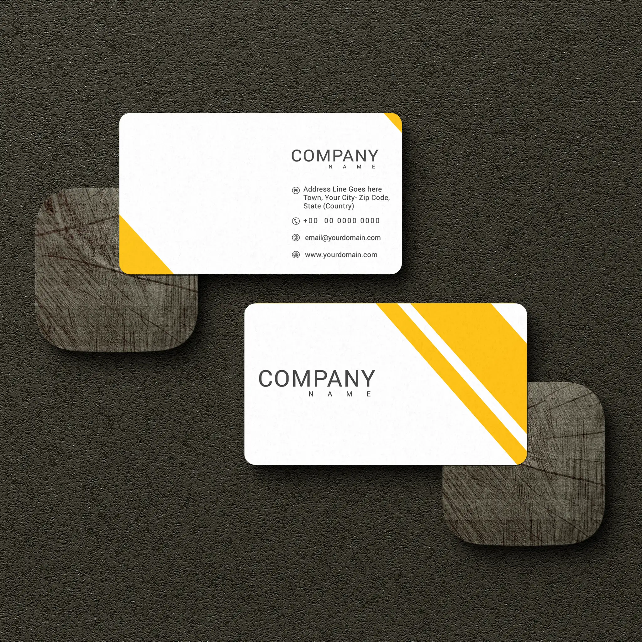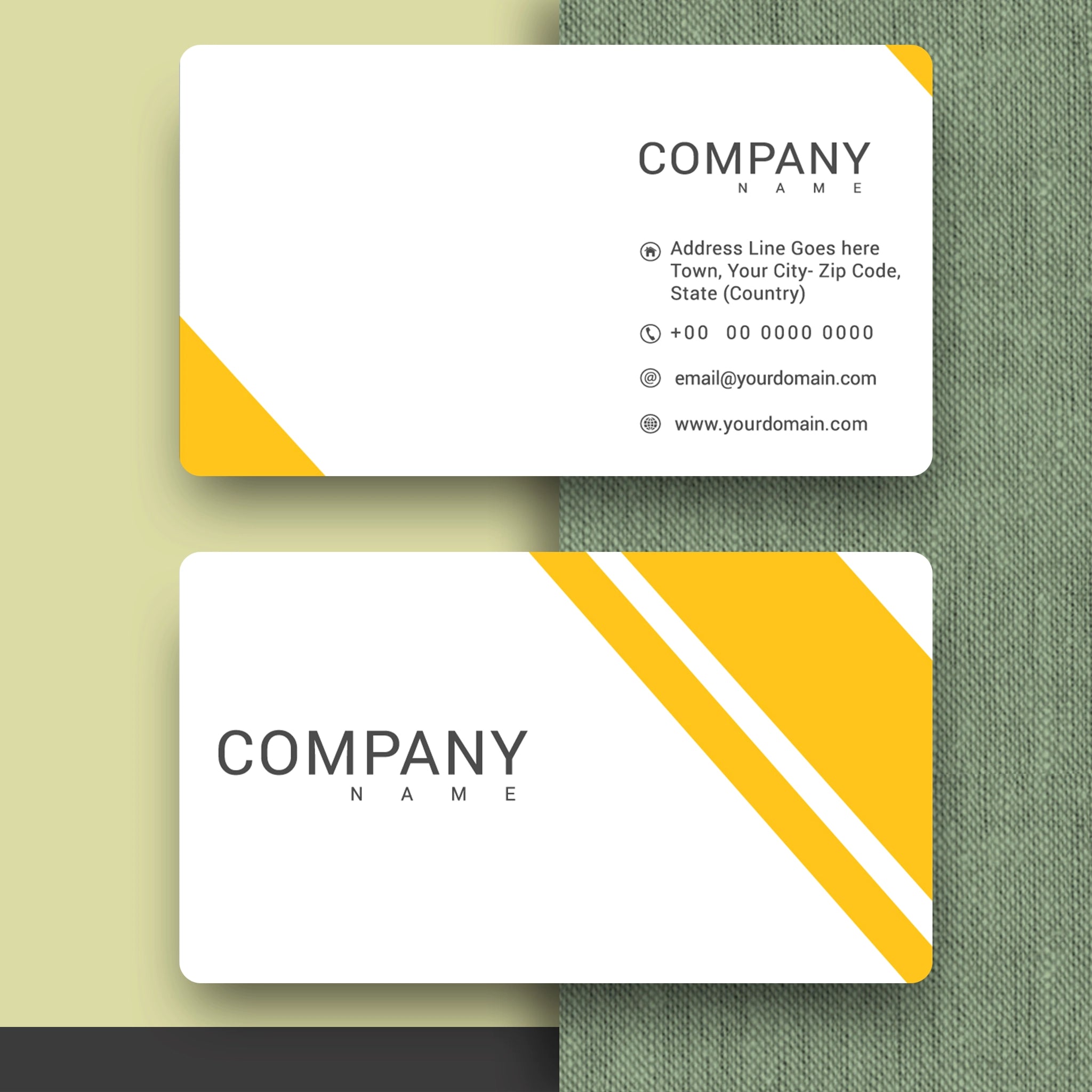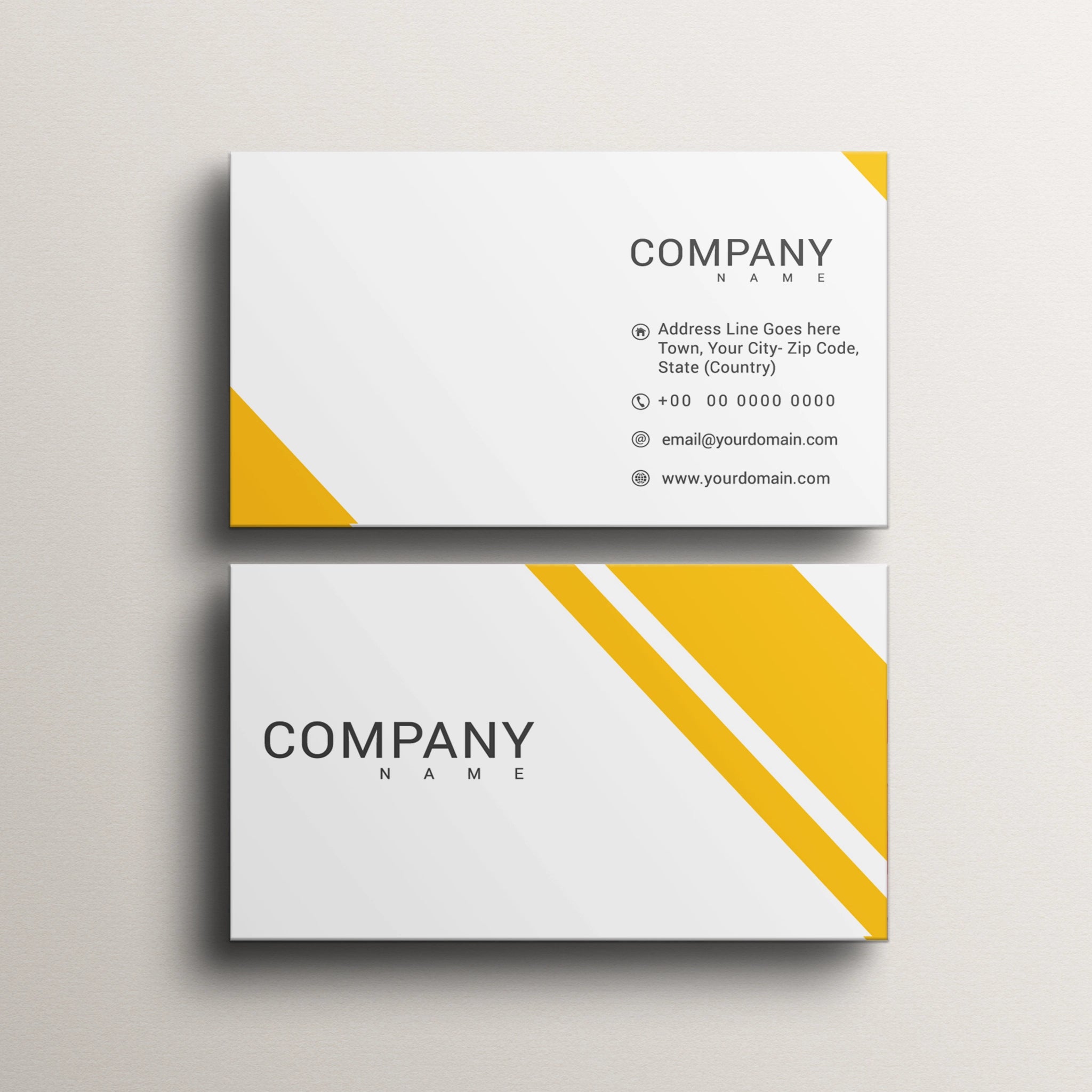 Keep it sleek and stylish with these minimalist yellow business cards. Featuring a clean white background with a sharp yellow accent, these cards are ideal for professionals, startups, and corporate brands looking for a modern and refined identity.