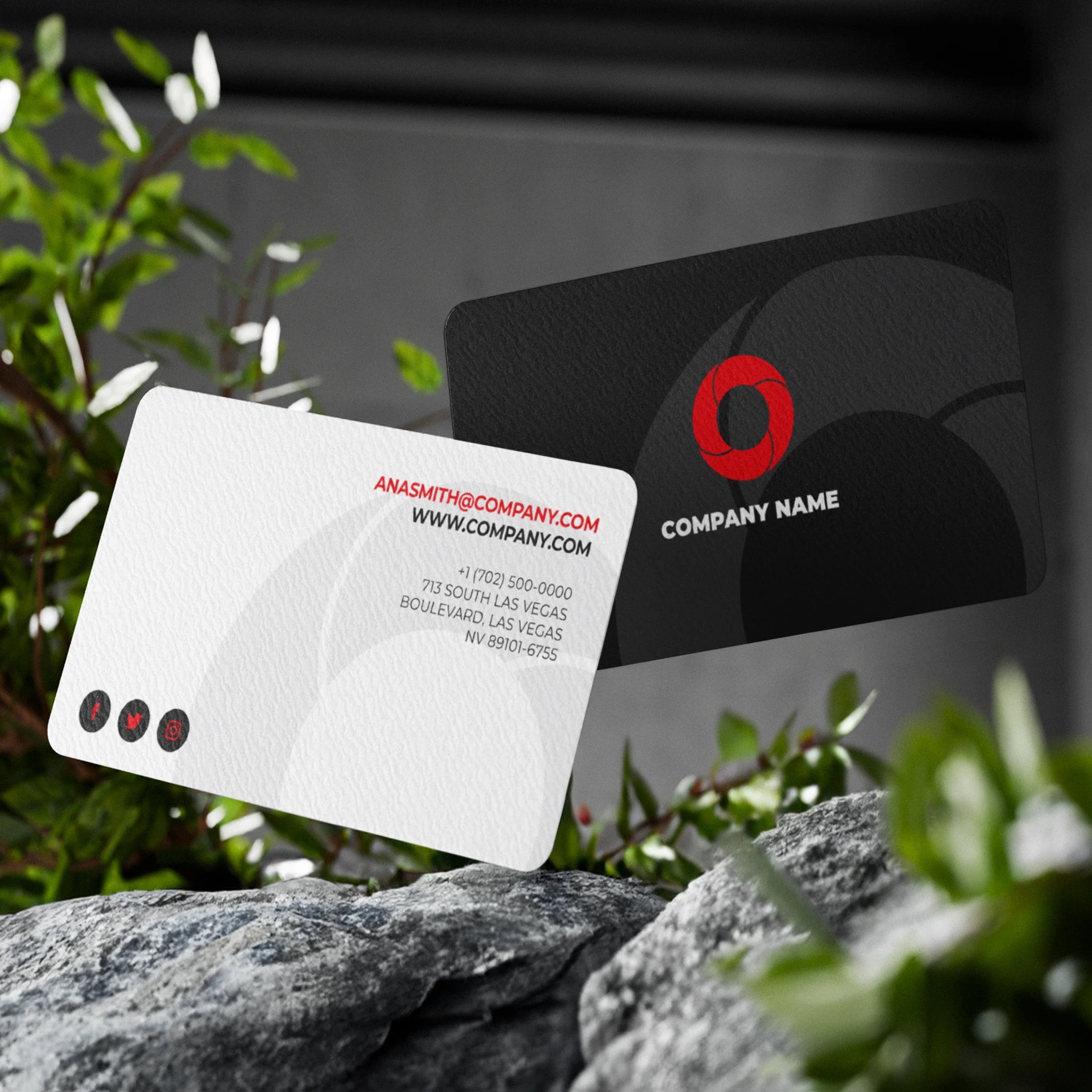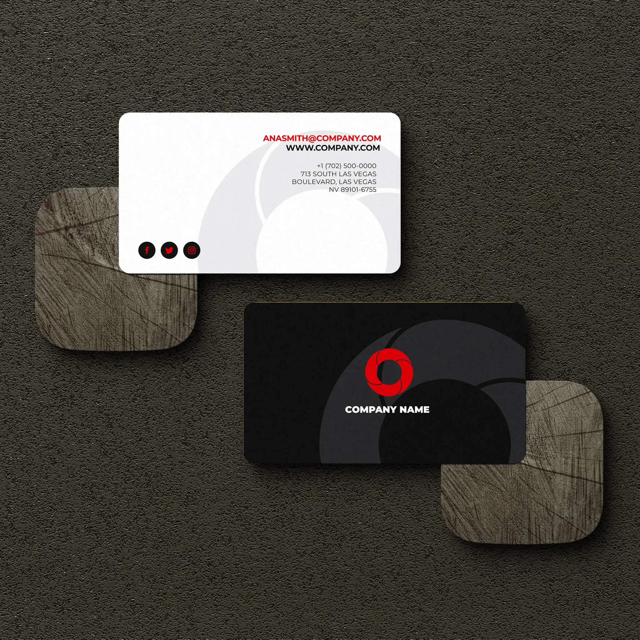 Make a bold statement with these sleek black and white business cards, featuring a striking red accent. Designed for modern professionals, creative agencies, and corporate brands, these cards exude sophistication and professionalism.