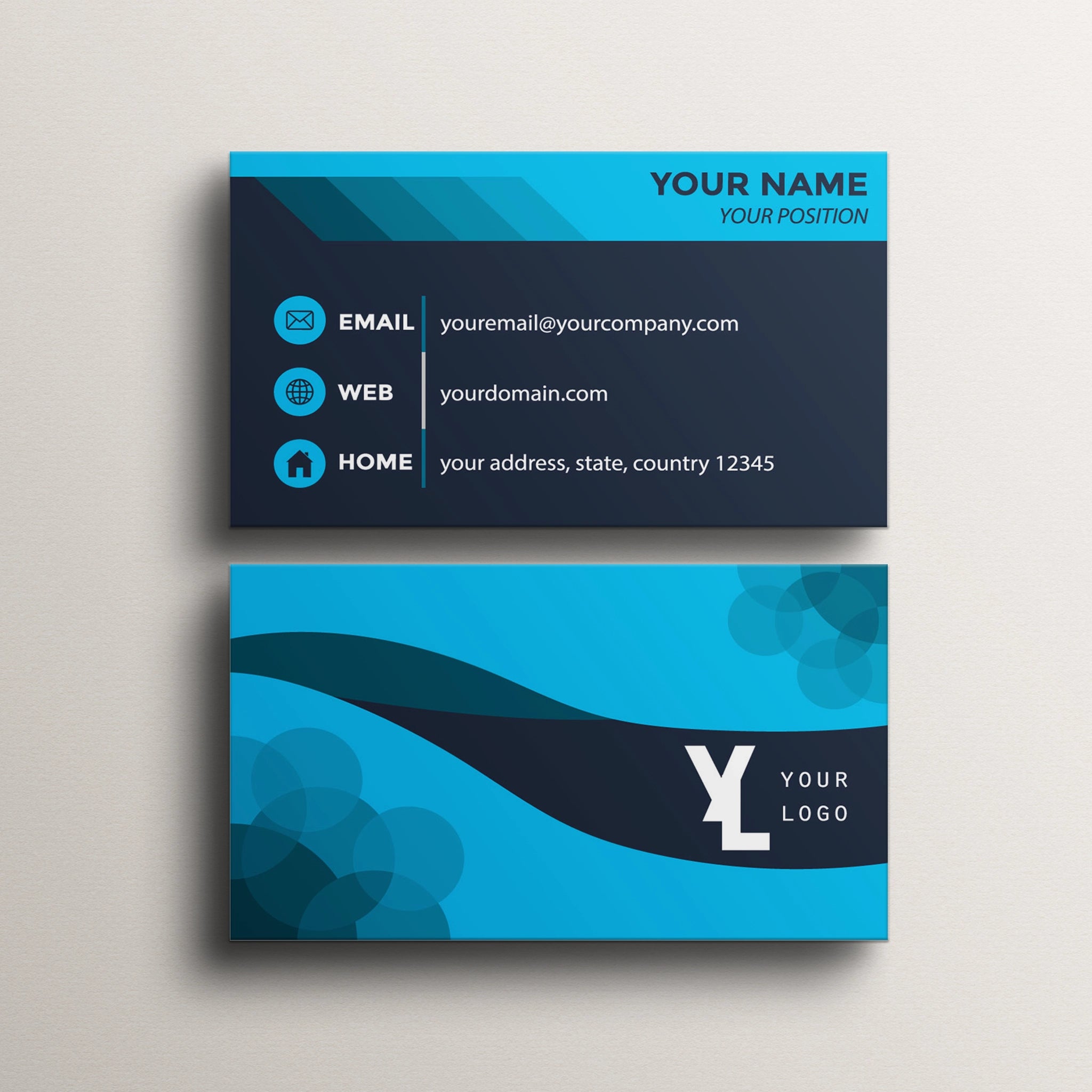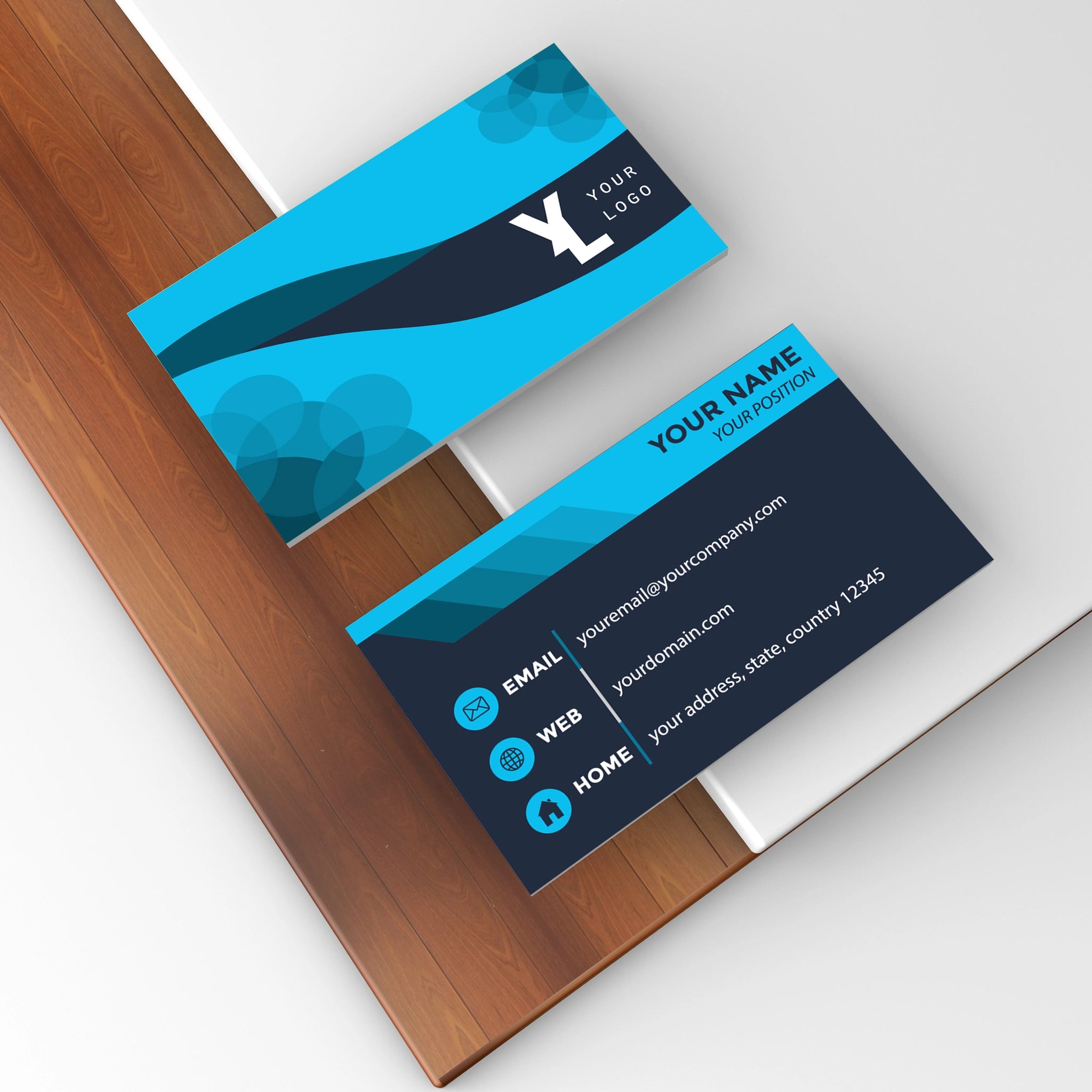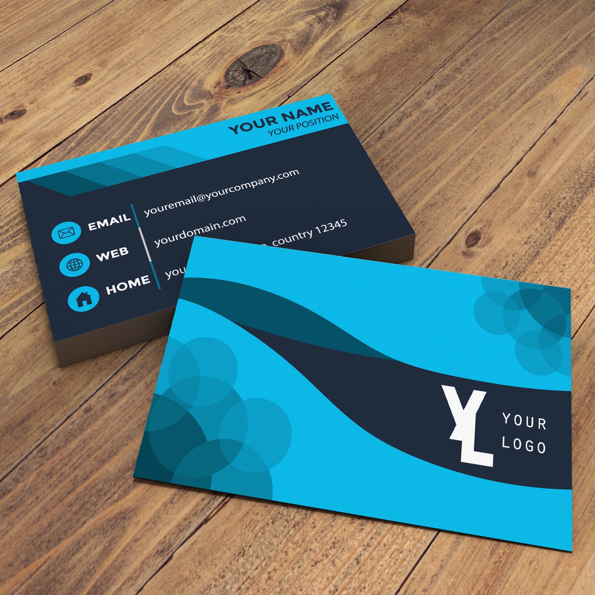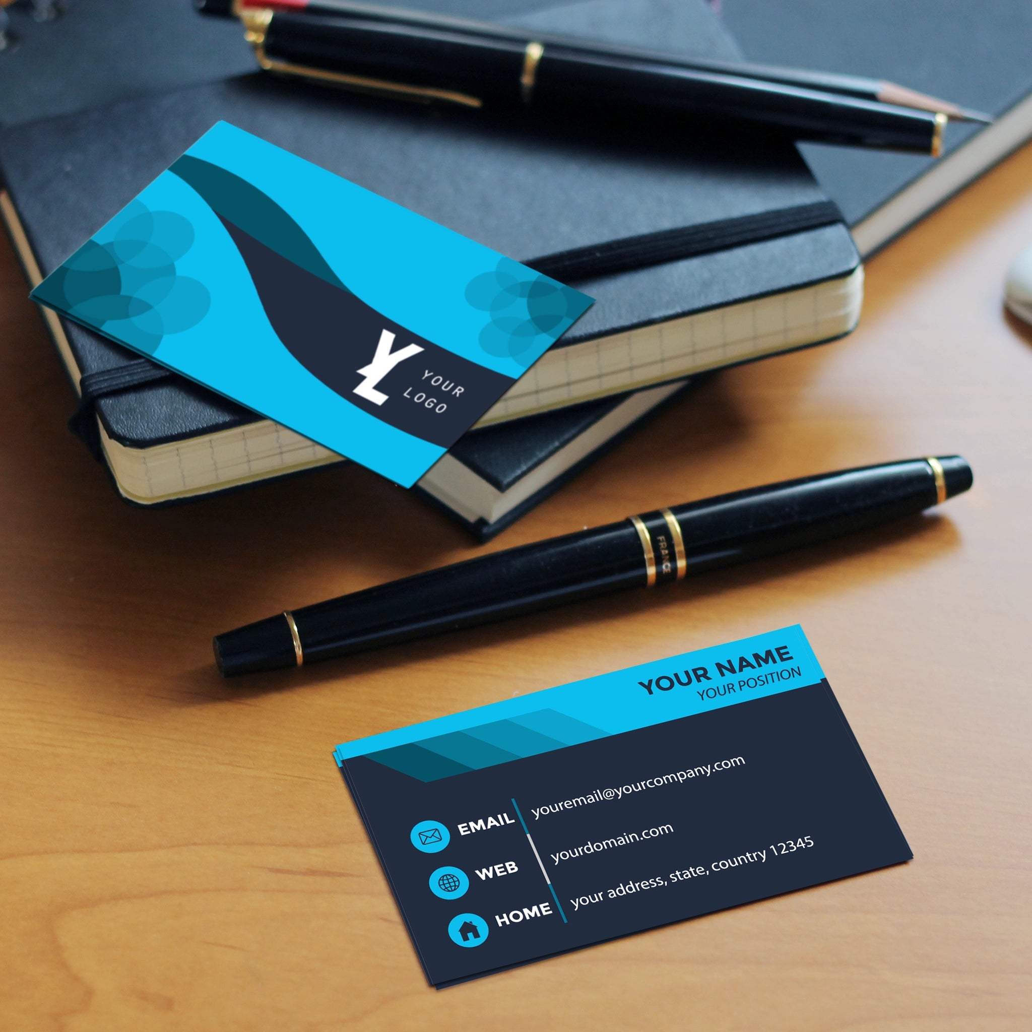 Make a lasting impression with our professionally designed business cards featuring a modern blue and black theme. Perfect for entrepreneurs, corporate professionals, and businesses that want a sleek and sophisticated look.
