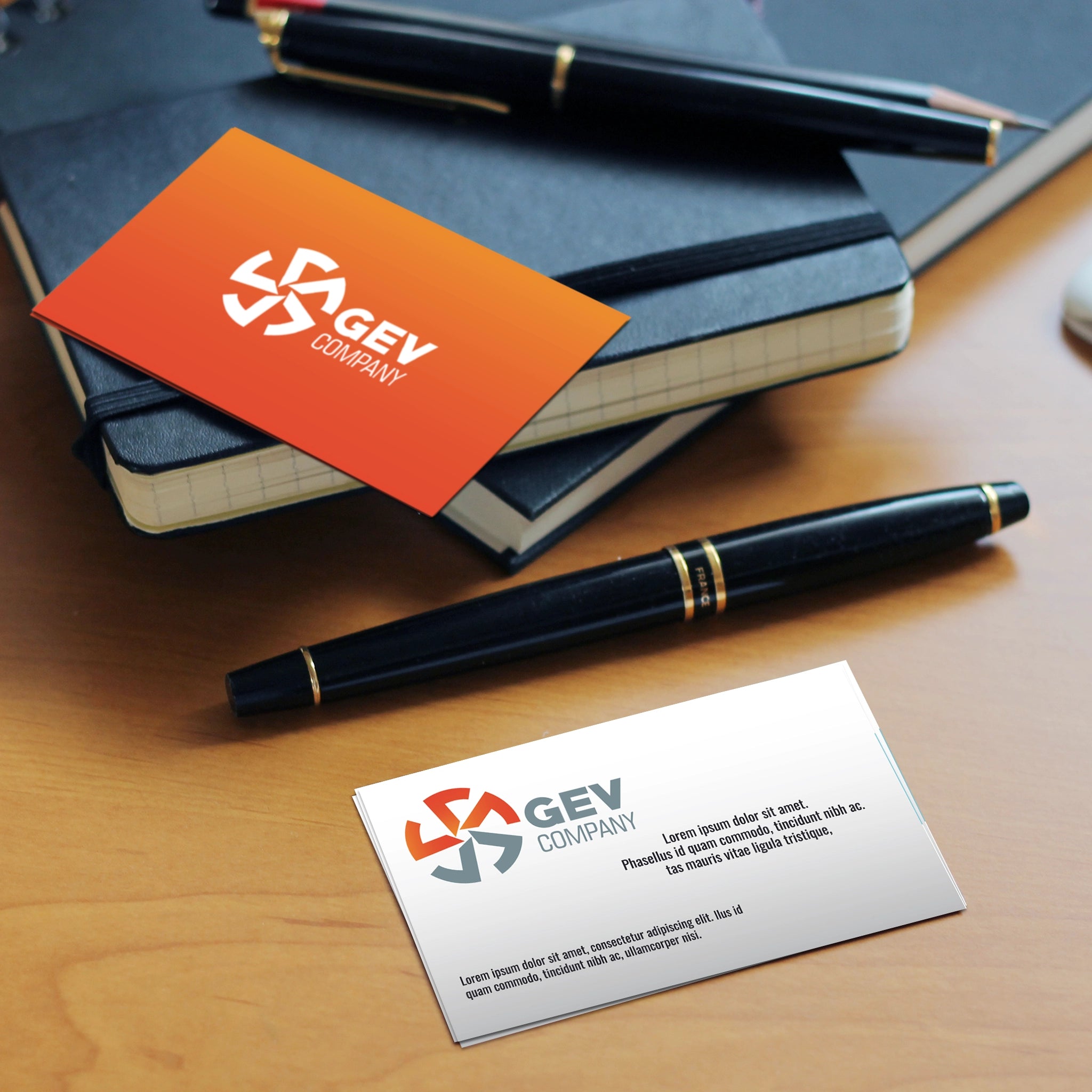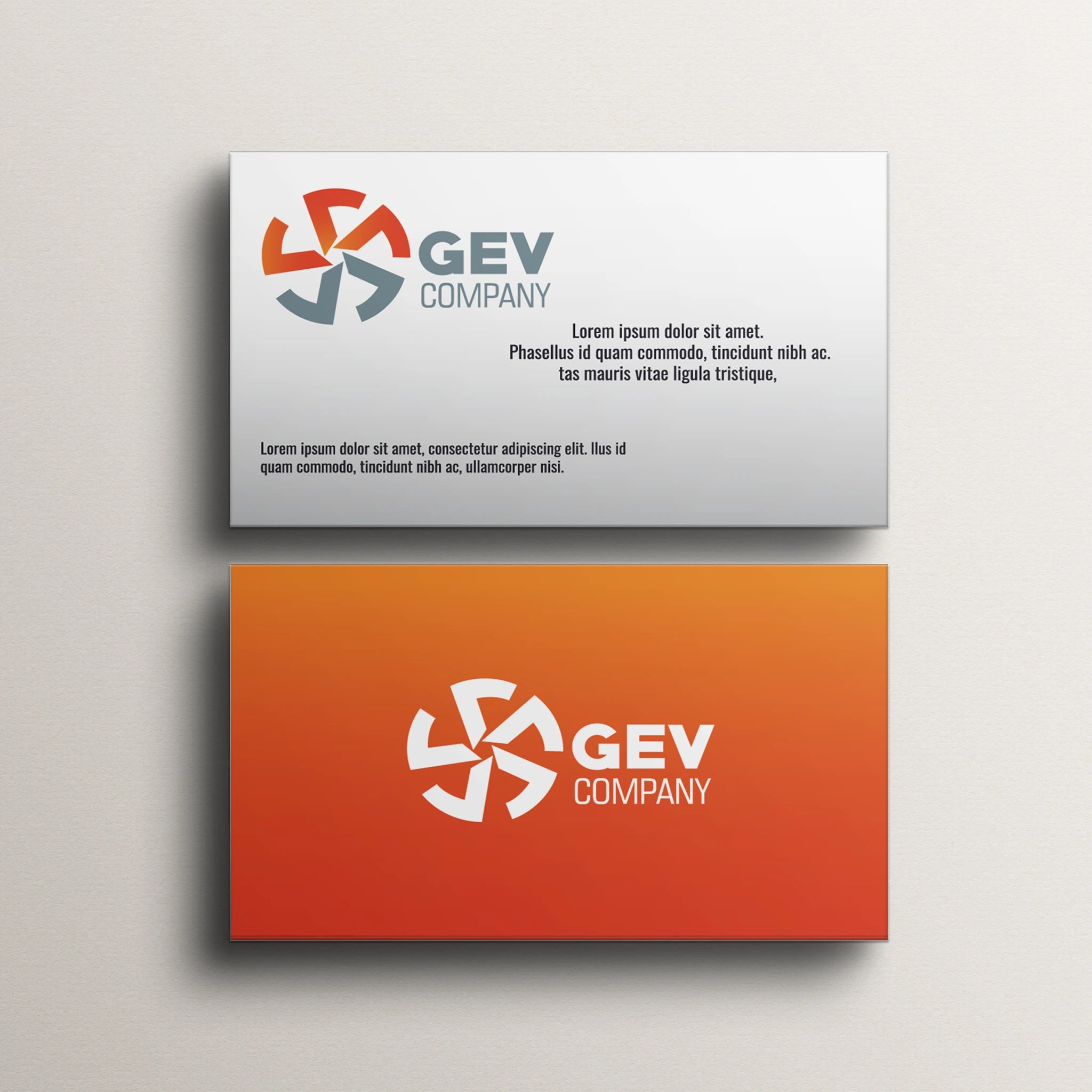 Stand out with these professional beige and orange business cards, designed for entrepreneurs, executives, and corporate professionals. The refined beige background with a bold orange gradient on the back creates a striking balance between elegance and visibility.