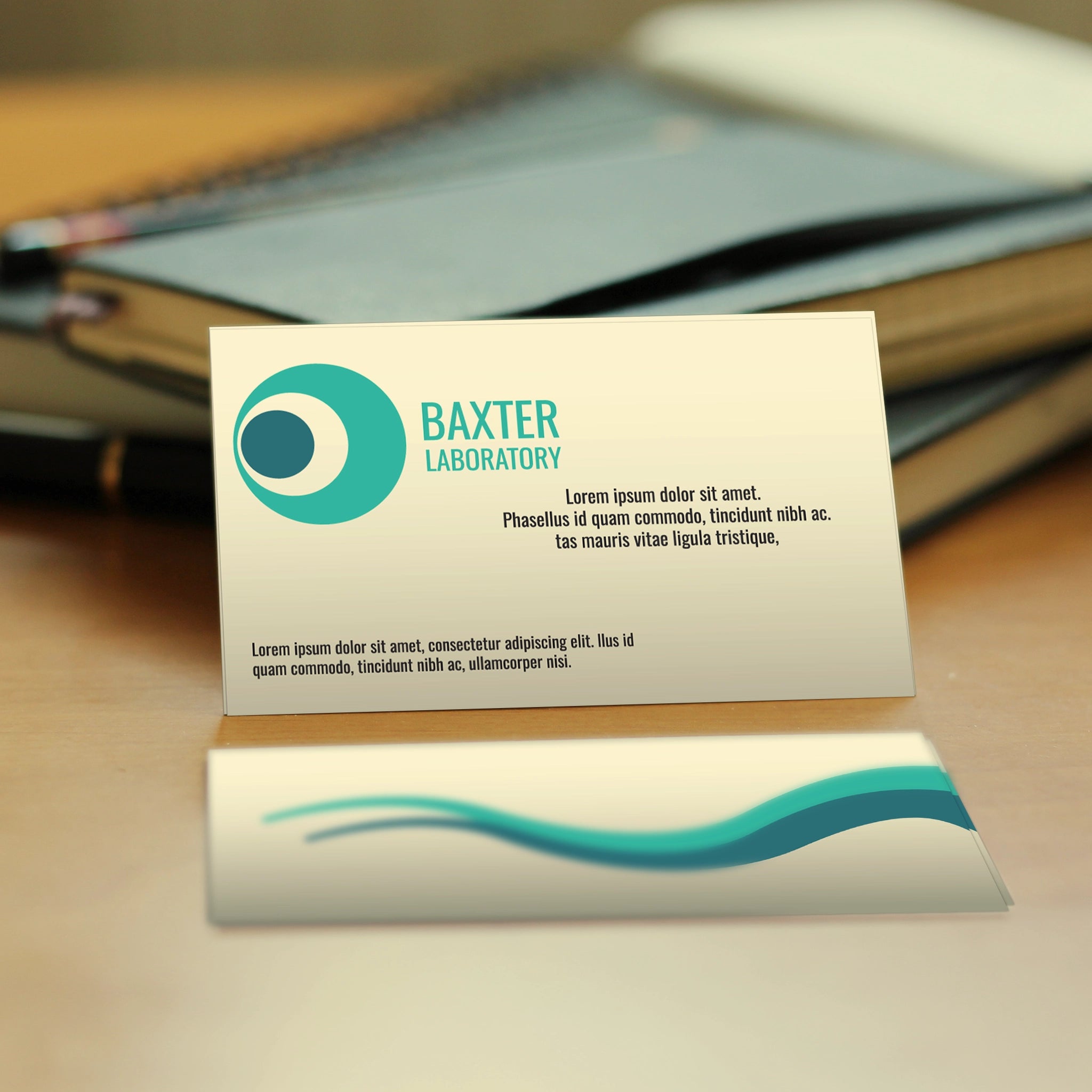 Make a statement with these elegant beige and teal business cards, ideal for corporate professionals, laboratories, and businesses seeking a modern, clean aesthetic. The soft beige background enhances readability, while the teal accents add a touch of sophistication.