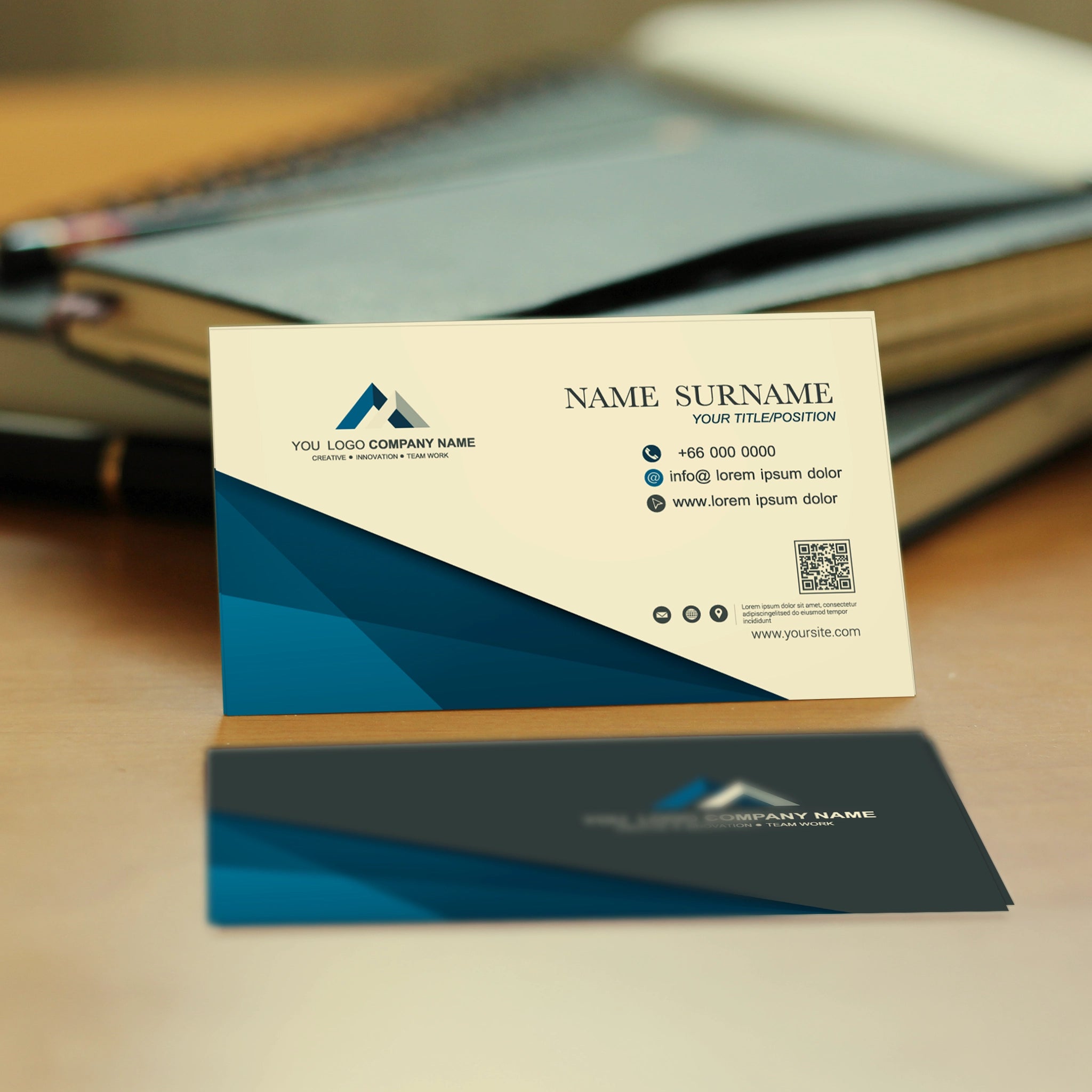 Make a lasting impression with these elegant blue and cream business cards. Featuring a sleek geometric blue pattern, these cards exude professionalism and sophistication. Ideal for corporate executives, startups, and professionals.