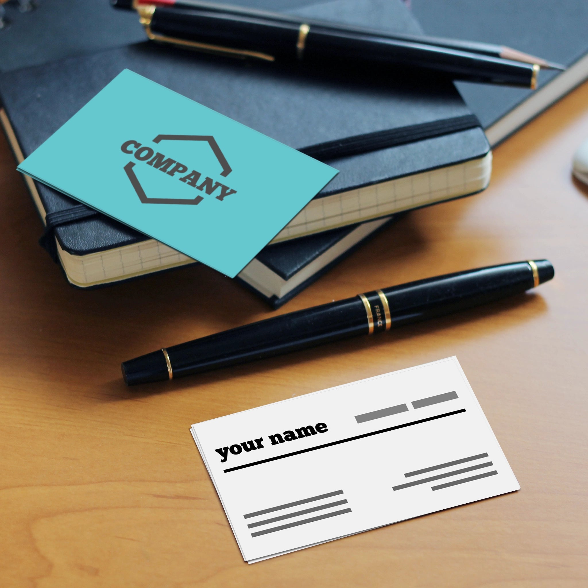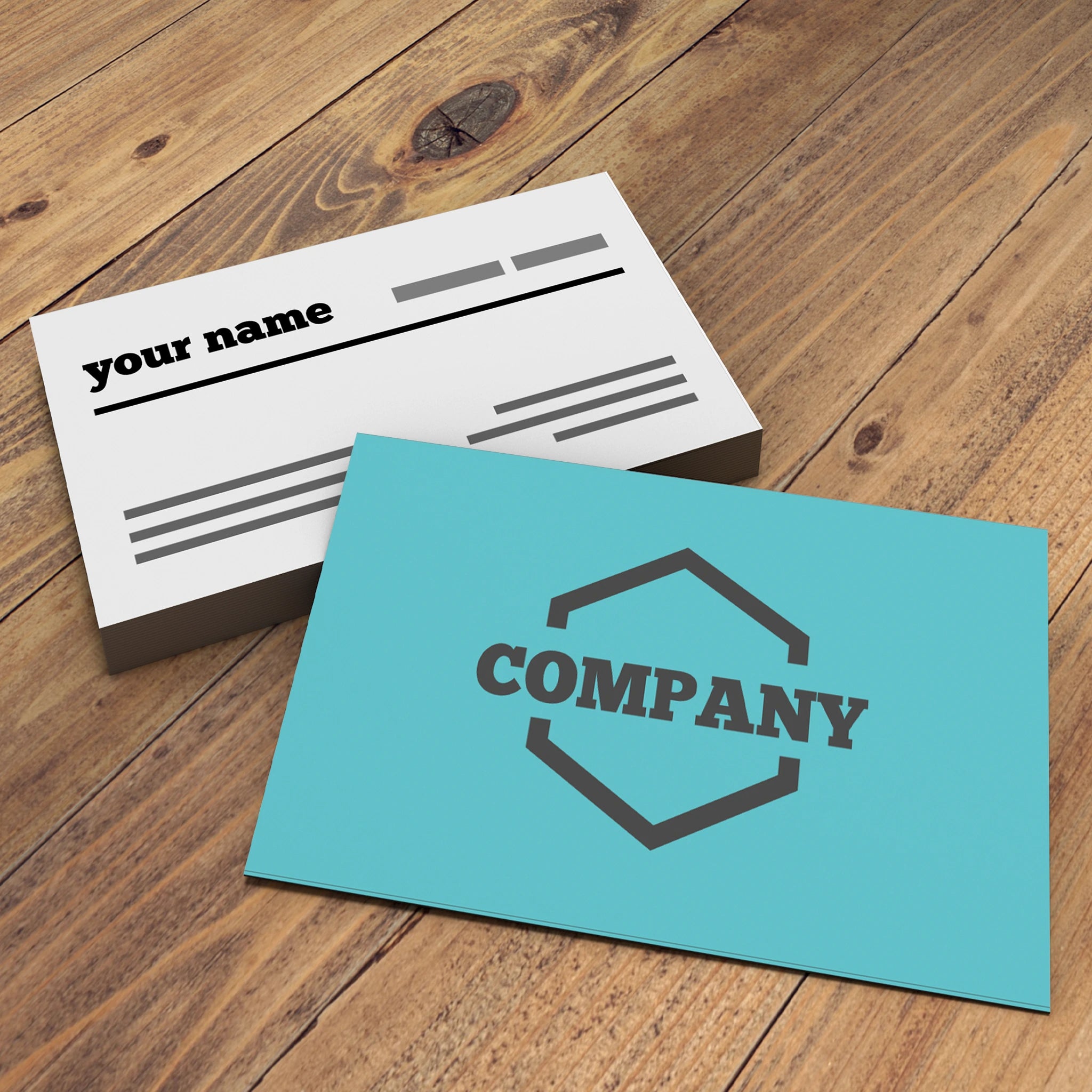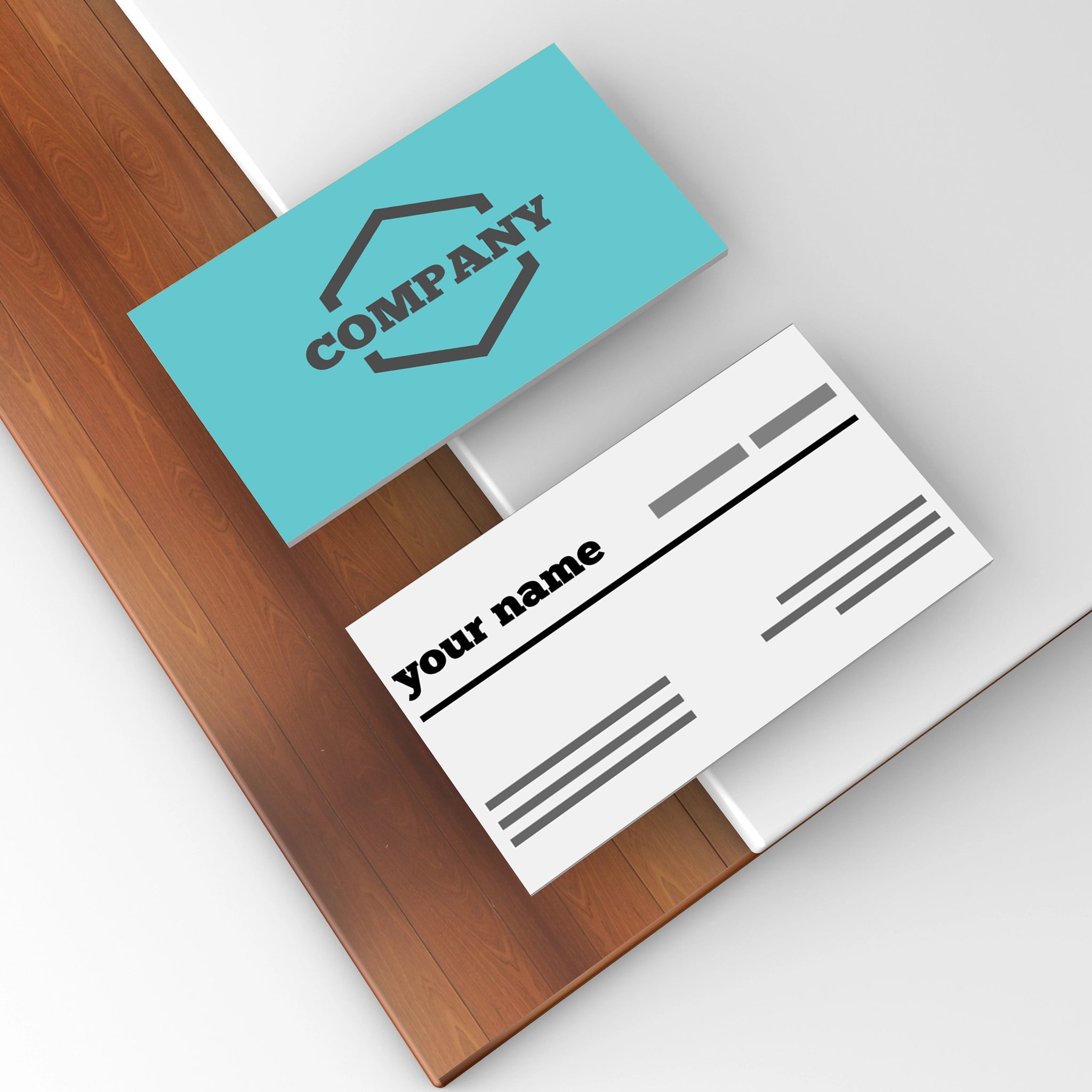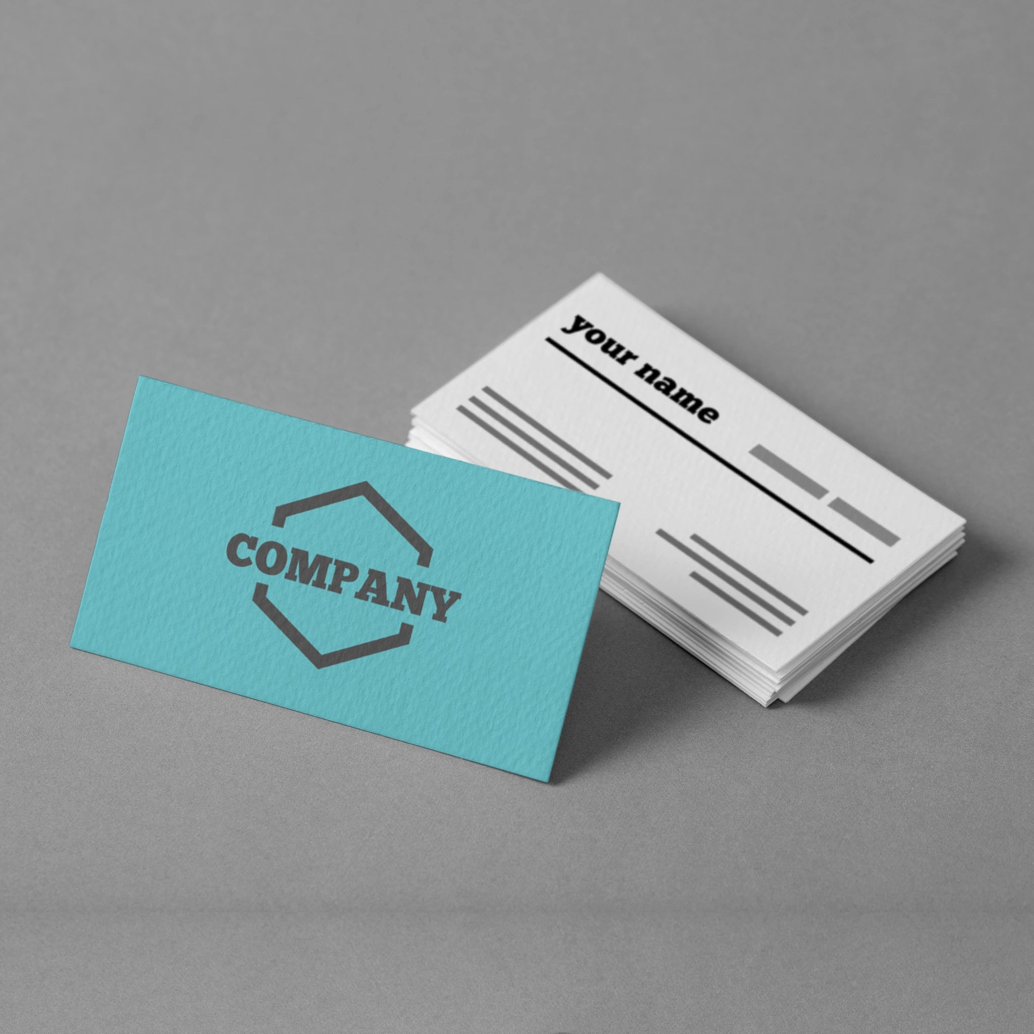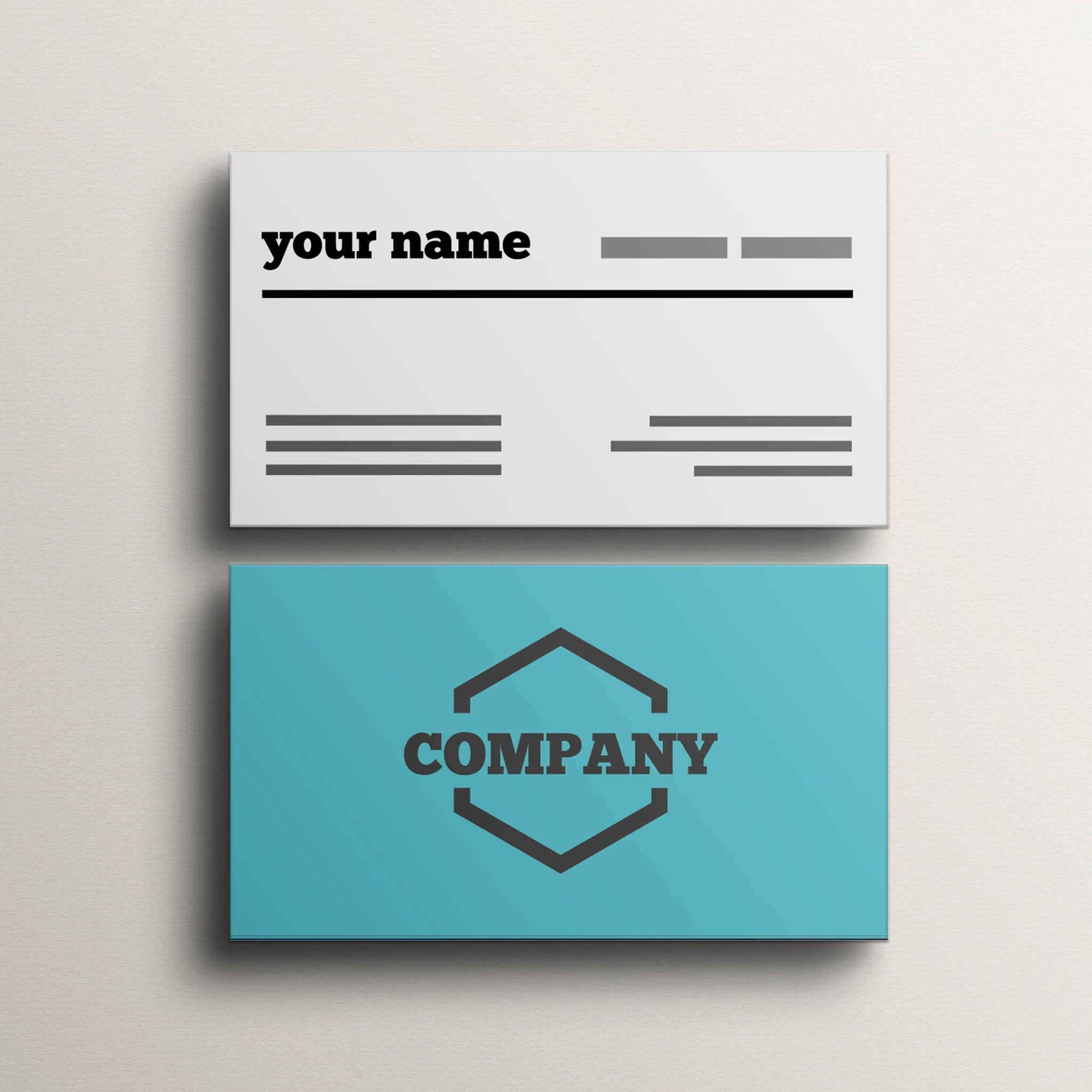 Make an impact with these minimalist business cards featuring a clean cream front with bold typography and a teal back with a geometric logo placement. Perfect for professionals, startups, and entrepreneurs who prefer a sleek and modern design.